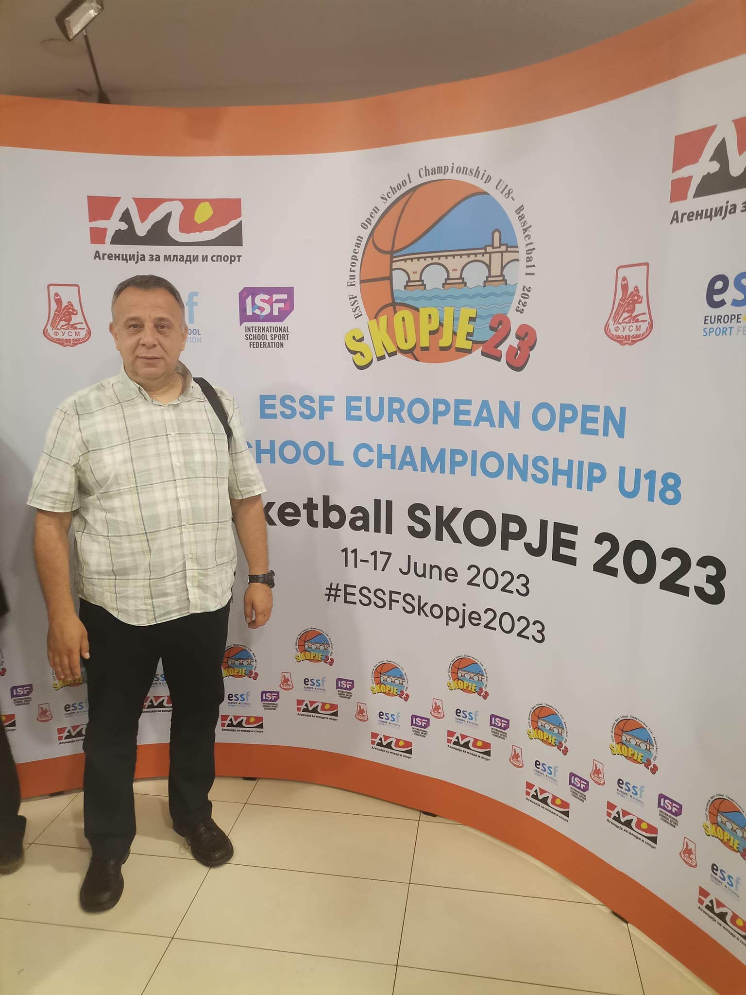 Федерацијата на училишен спорт на Македонија во периодот од 11 до 17 јуни 2023год., во Скопје е домаќин напрвото отворено Европско првенство во кошарка засредношколци У-18. Свеченото отварање на ова европско првенство се одржа на13.06.2023 год. (вторник) во киното Милениум во Скопје, каде што се преставијасите учесници на првенство. На отварањето се обратија претседателот на ФУСМ,проф. д-р Александар Туфекџиевски, Претседателот на Европската федерација научилишен спорт, директорот на АМС Наумче Мојсоски и промоторот на овапрвенство Перо Антиќ. На покана на претседателот на ФУСМ на свеченотоотварање на ова Европско првенство учество зема и професорот по спорт испортски активности при ССОУ “Коле Неделковски“, м-р Ангелче Гушев