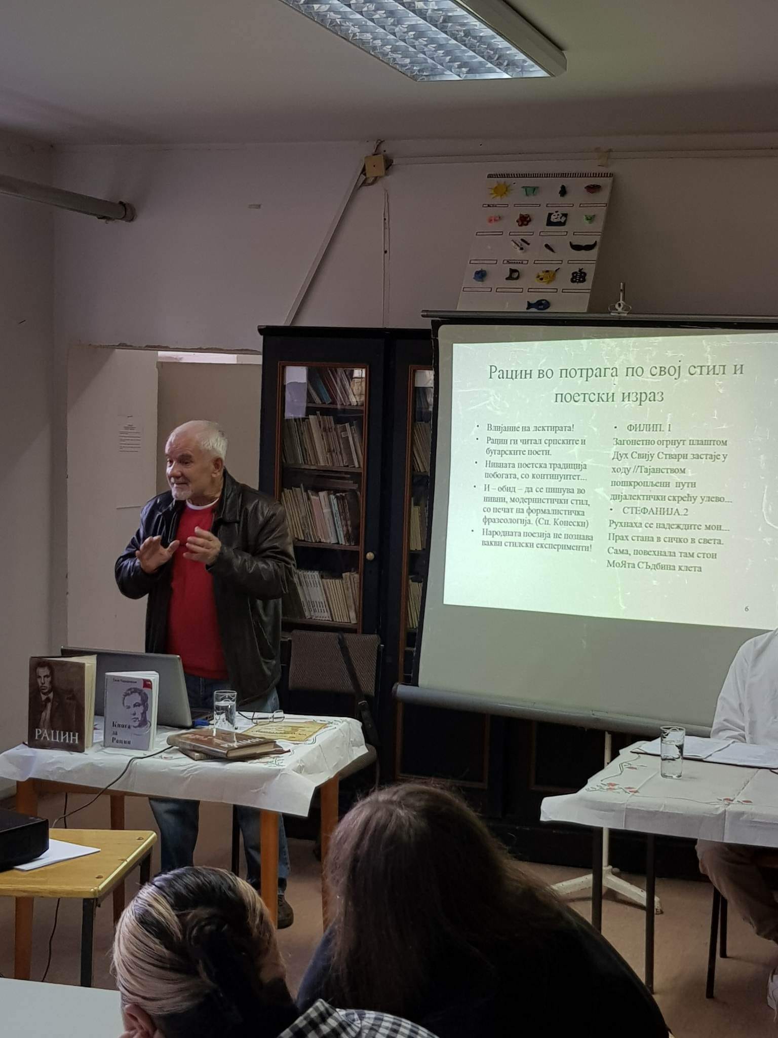 Денес, во рамките на 55-та програма на детските рацинови средби, во средното училиште ,,Кочо Рацин”, се одржа настан ,,Беседа за Рацин” со присуство и презентација на проф. д-р Јордан Стојановски.