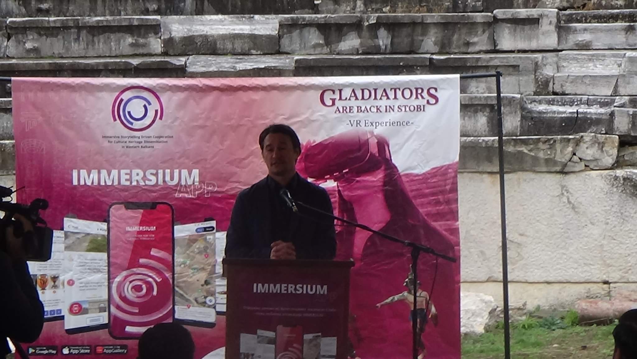 Посета на 50 ученици од прва, втора и трета година на археолошкото наоѓалиште ,,Стоби”, по повод презентирање и активирање на апликацијата ,,Immersium”, која овозможува преку интерактивен водич (кратки игри, квизови, реконструкции) на мобилниот телефон, да може да се искуси секојдневието на жителите на градот Стоби од крајот на 4 век од н.е.