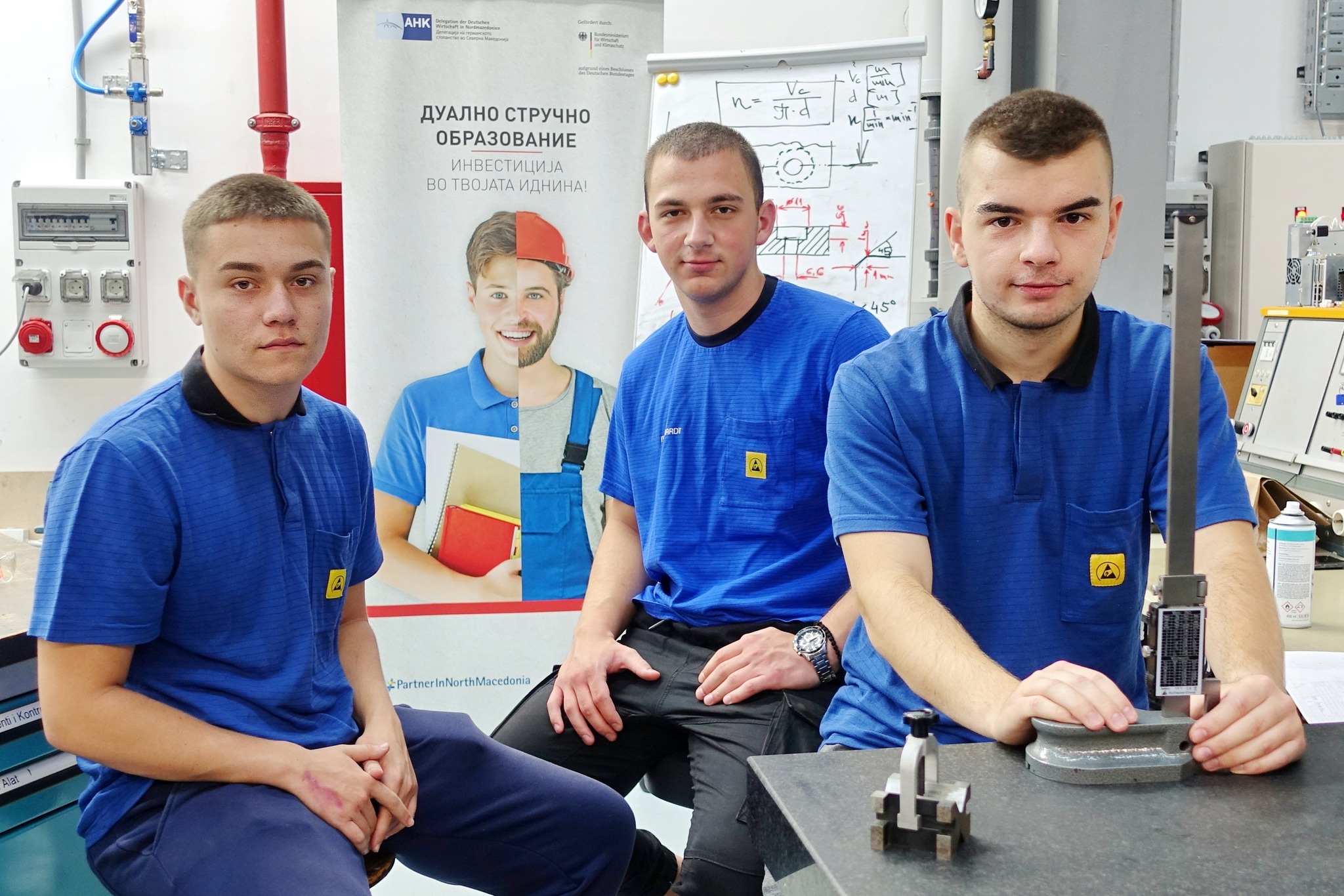 Во периодот од 03 до 05 јули 2023 година, првата генерација на ученици од образовниот профил „Техничар за производно машинство“ го полагаше практичниот дел од завршниот испит по германски стандарди. Полагањето се реализираше во делот за обука на ученици – практиканти на компанијата „Маркарт Македонија“. Учениците своите вештини и способности практично ги презентираа пред тричлената испитна комисија составена од претставници од компаниите – партнери во дуалното образование: